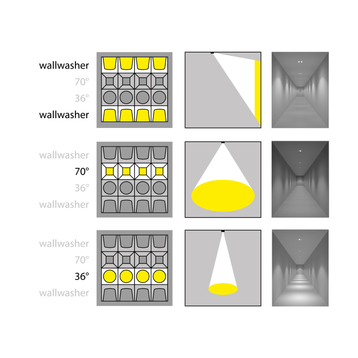 • PIXY MIX offers the possibility of individual optical configuration within a single luminaire — allowing it to be perfectly tailored to the character of the interior.