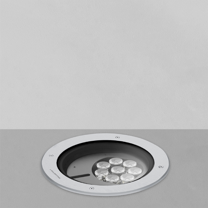 INX 225 MOVE In-Ground is a recessed luminaire featuring advanced technology that allows independent adjustment of the light direction. Thanks to an adjustable mounting plate, the user can precisely set the beam angle within 0–30° in the vertical axis and up to 60° in both directions of the horizontal axis, enabling accurate adaptation of the lighting effect — from subtle highlighting of details to strong architectural accents.