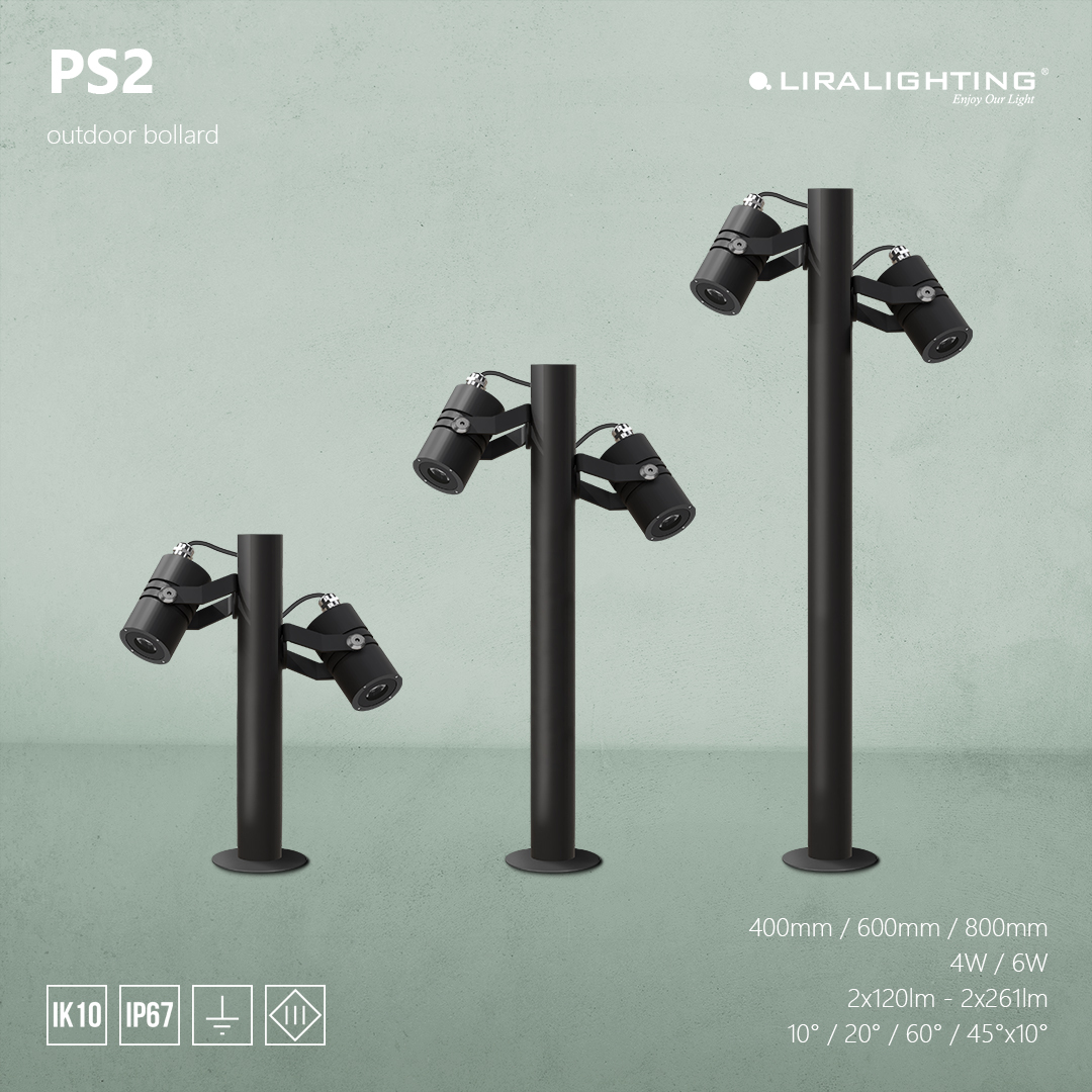 Słupki oświetleniowe PS1/PS2 to trwałe i estetyczne rozwiązania do zastosowań zewnętrznych, wykonane z aluminium i dostępne w wysokościach 400, 600, 800 mm Wyposażone w projektory PISTON 50, zapewniają precyzyjne oświetlenie dzięki szerokiemu wyborowi optyk: 10°, 30°, 50°, 10°x45°. Ich konstrukcja umożliwia montaż jednego lub dwóch projektorów, co pozwala na elastyczne dostosowanie kąta i intensywności światła. Przeznaczone do oświetlenia parków, ogrodów, ścieżek pieszych, placów miejskich, stref rekreacyjnych oraz podświetlania roślin ogrodowych.