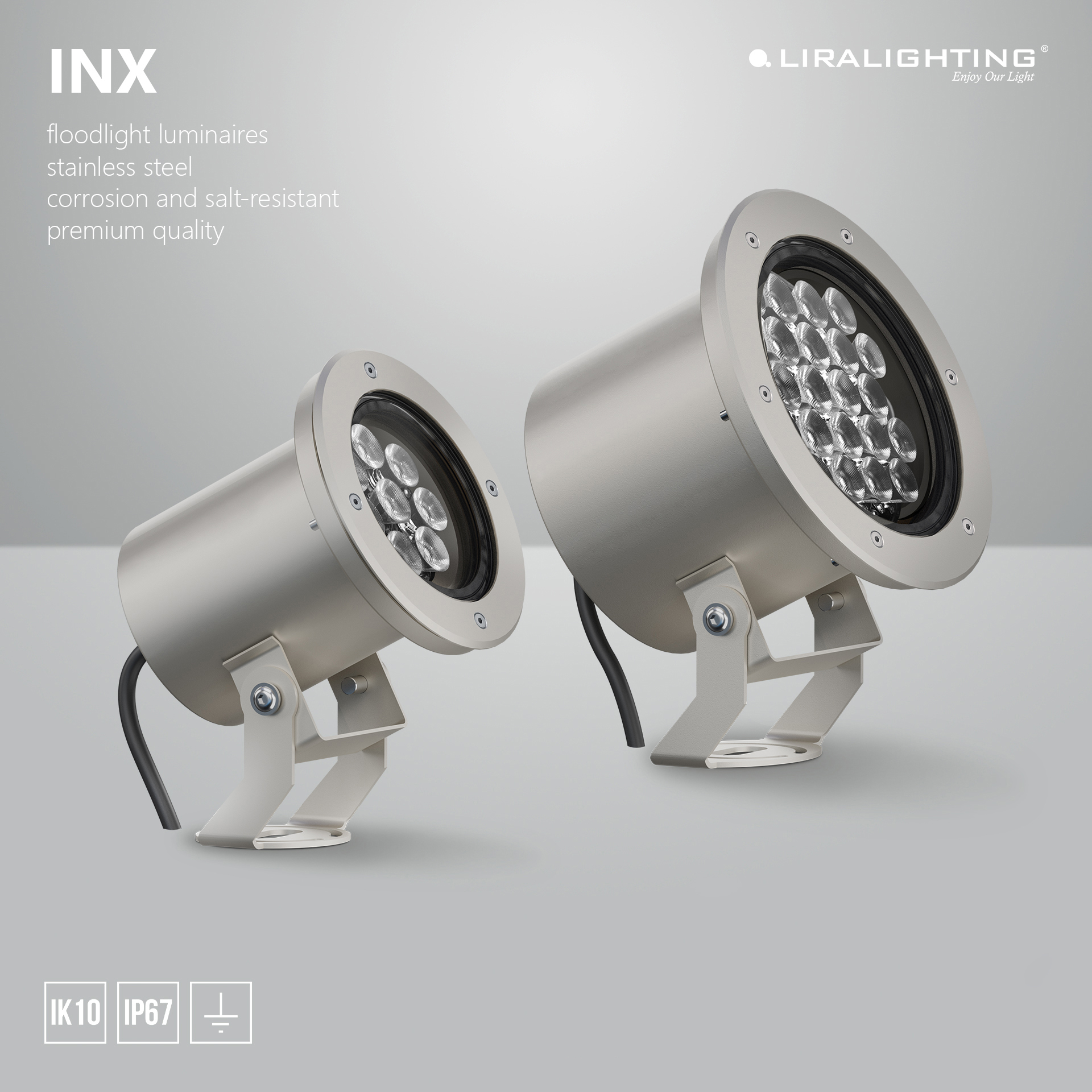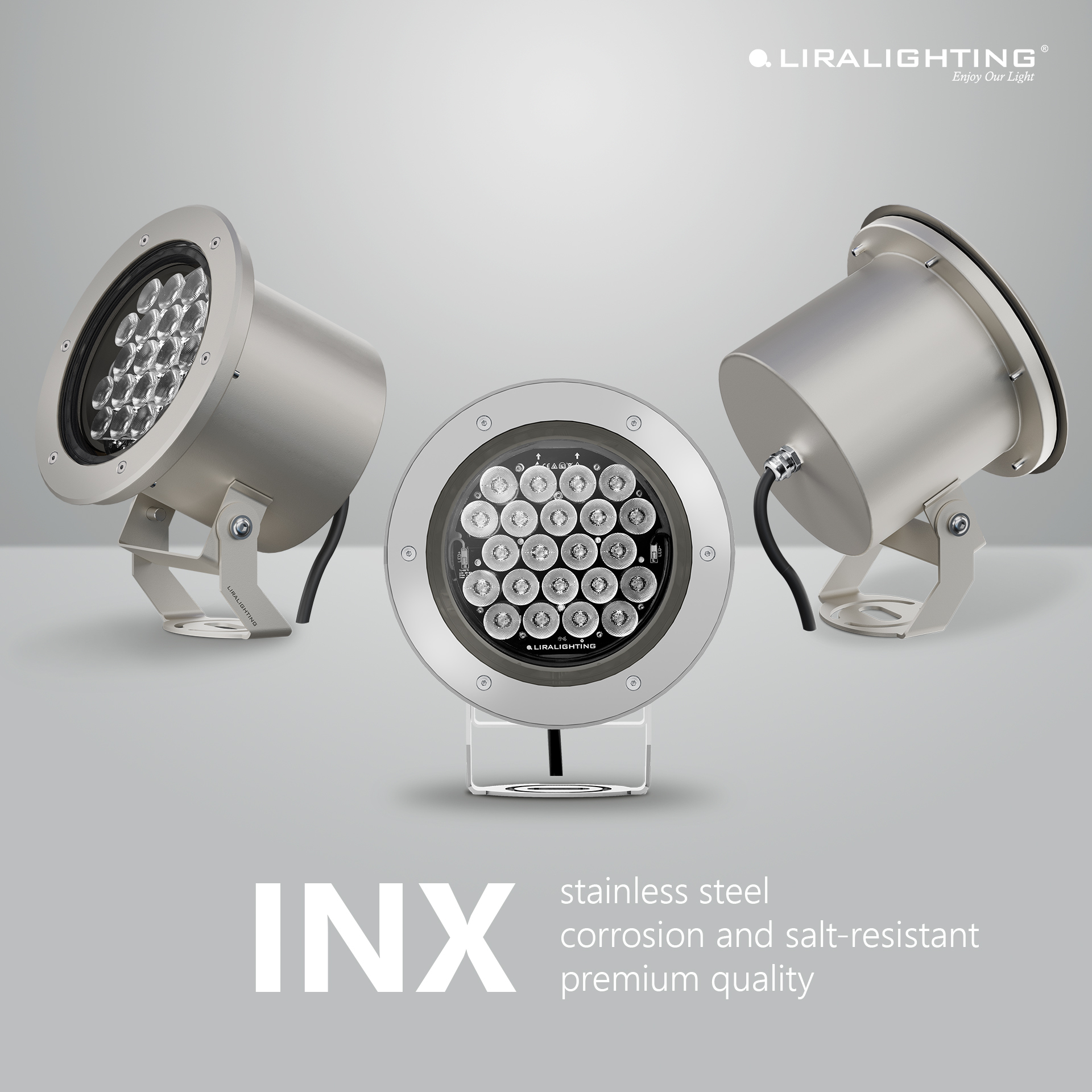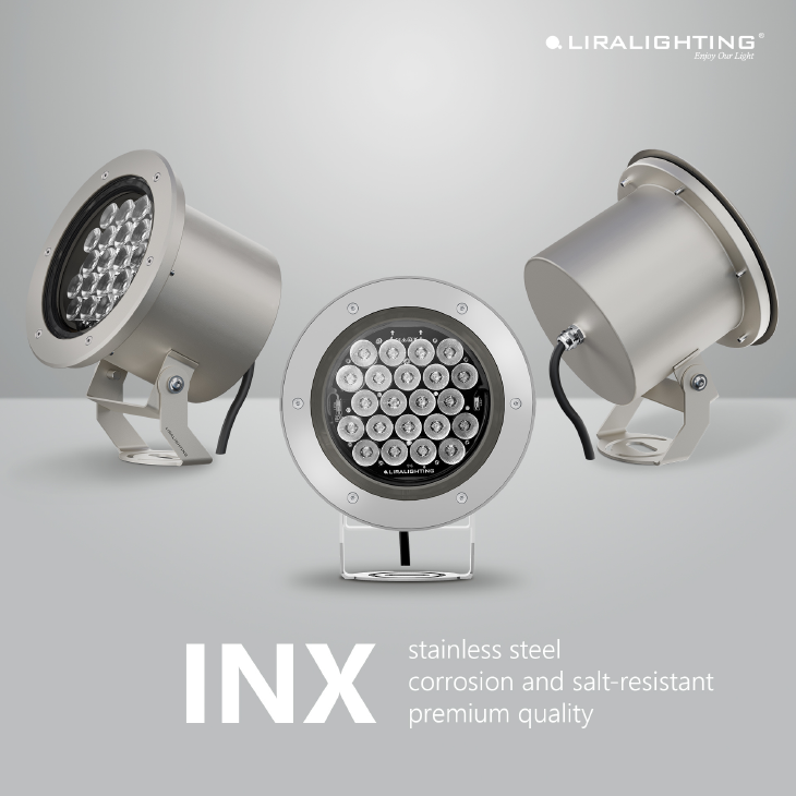 Oprawy z serii INX to rozwiązania zaprojektowane do pracy w najbardziej wymagających środowiskach zewnętrznych. Wykonane z elektropolerowanej stali szlachetnej 1.4301, zapewniają maksymalną odporność na korozję i zasolenie, czynniki atmosferyczne oraz uszkodzenia mechaniczne, jednocześnie oferując perfekcyjne, szlachetne wykończenie powierzchni. Elektropolerowanie nie tylko podnosi estetykę opraw, ale także zwiększa odporność materiału na zabrudzenia i agresywne warunki środowiskowe.