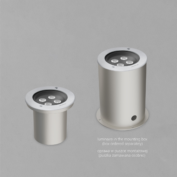 INX 175 RGBW In-Ground to wpuszczana w podłoże oprawa zaprojektowana z myślą o trwałości, bezpieczeństwie i estetyce. To oprawa gruntowa przeznaczona do montażu w dedykowanej puszce instalacyjnej. Wyposażona w hartowane szkło o grubości 8 mm, zapewnia wysoką odporność na nacisk i uszkodzenia mechaniczne. Oprawa przystosowana jest do maksymalnego obciążenia do 5000kg statycznie i 2000kg przy prędkości 30 km/h, co umożliwia jej zastosowanie w strefach komunikacyjnych oraz intensywnie użytkowanych przestrzeniach zewnętrznych. Dostępność wersji RGBW, umożliwiającej tworzenie dynamicznych scen świetlnych, efektownych iluminacji kolorystycznych oraz wysokiej jakości światła białego, dopasowanego do charakteru oświetlanego obiektu. Szczelność IP67 oraz klasa IK10 umożliwiają montaż w ciągach pieszych i przestrzeniach publicznych, zapewniając niezawodne podświetlenie elewacji, drzew oraz elementów architektonicznych.