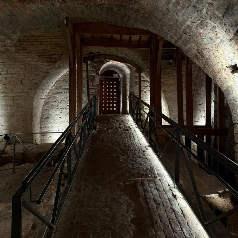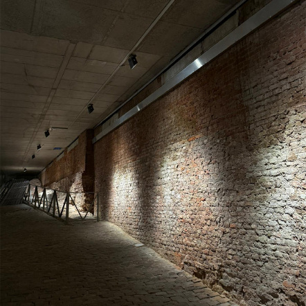 Oświetlenie prowadzi zwiedzających, zapewnia komfort i bezpieczeństwo oraz tworzy narracyjny przepływ przez archeologiczny krajobraz.